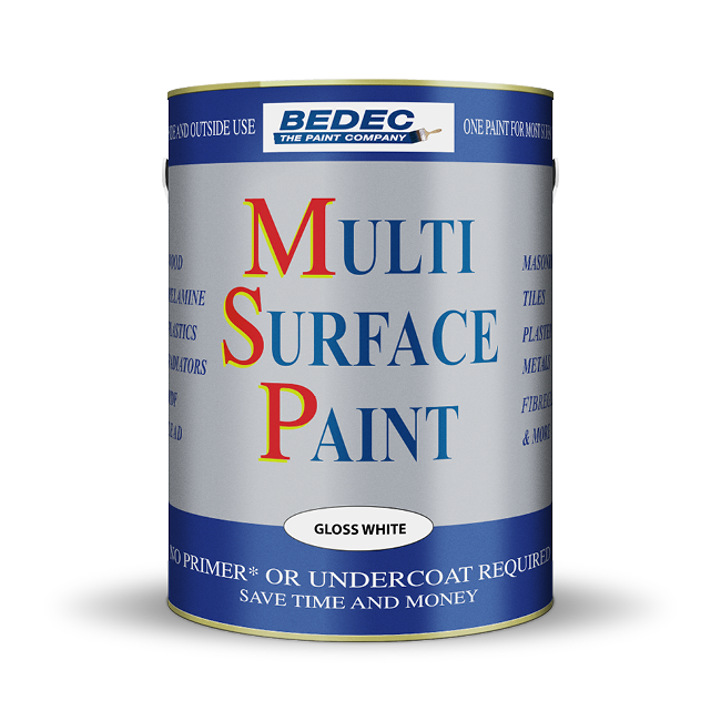 Bedec Multi Surface Paint (MSP)® is a versatile, water-based, self-priming, and self-undercoating paint designed for interior and exterior applications. This all-purpose coating takes the guesswork out of painting by providing excellent adhesion to various substrates, making it ideal for DIY, trade, commercial, and industrial projects.
